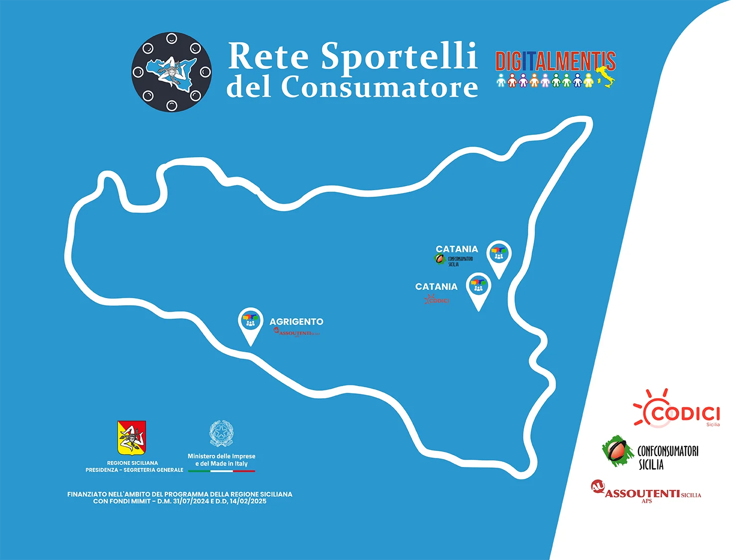 CODICI SICILIA A.P.S., CONFCONSUMATORI SICILIA e ASSOUTENTI SICILIA A.P.S., con il sostegno della Regione Siciliana e in collaborazione con il MIMIT, proseguono il loro impegno al fianco dei cittadini offrendo informazione, assistenza e tutela su tutto il territorio regionale.